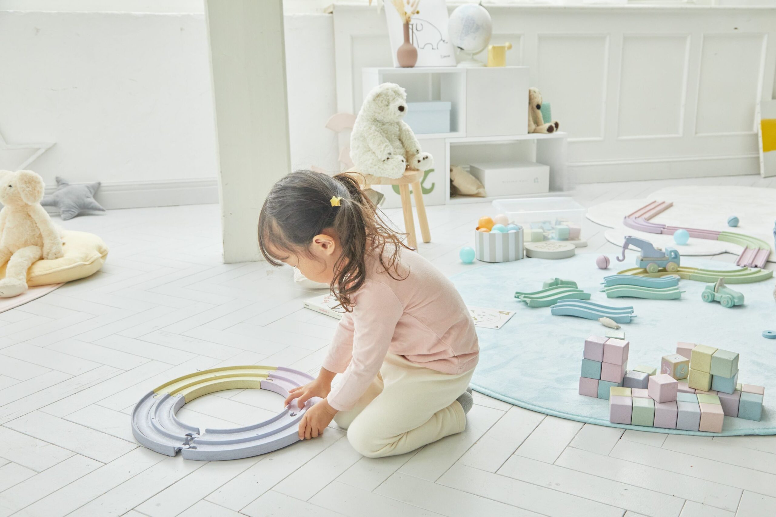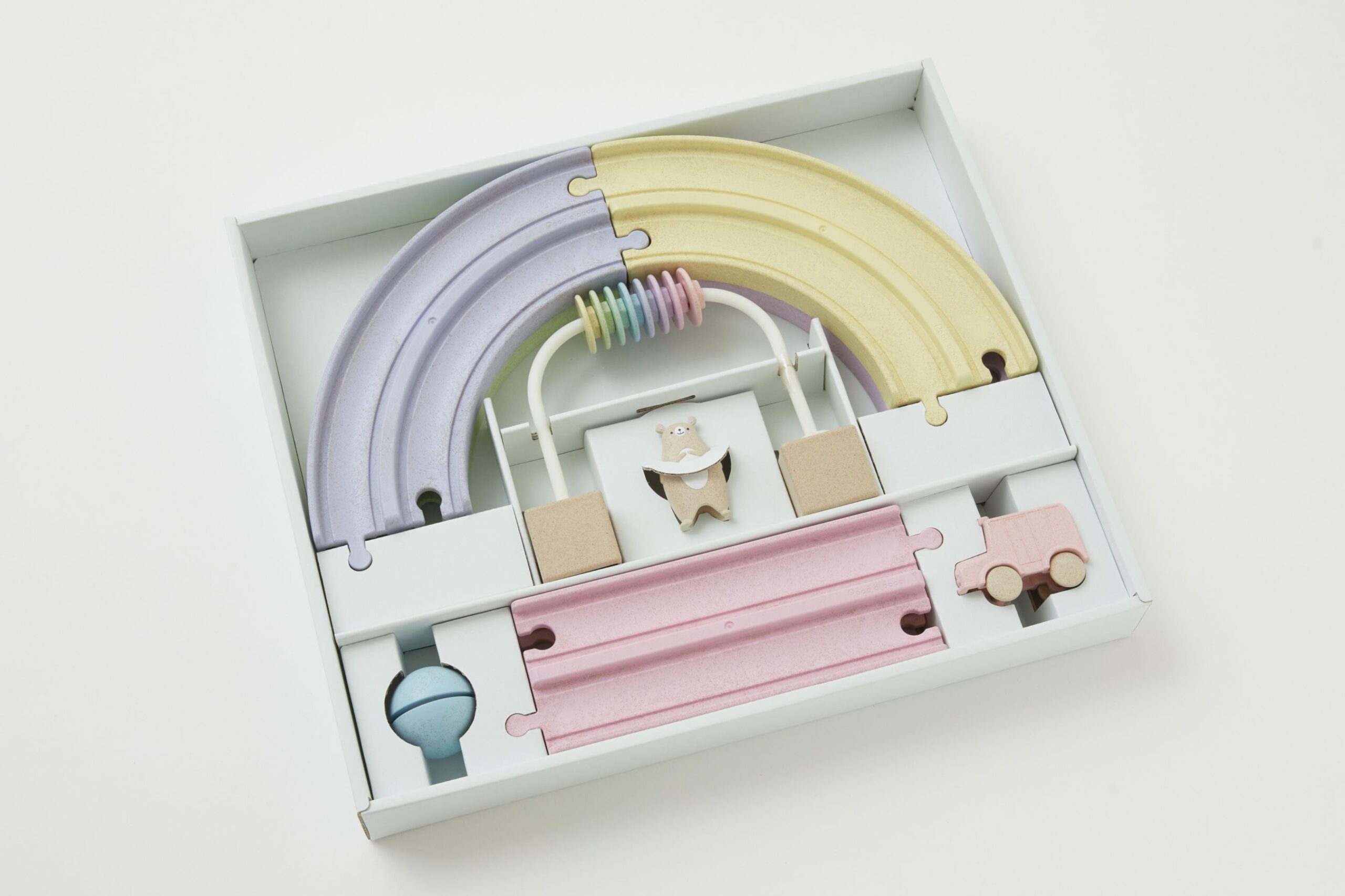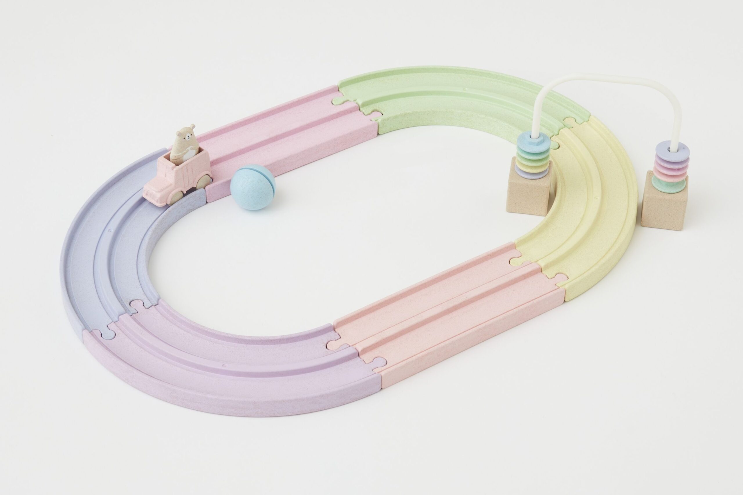 The Nijiiro flat rail set is made with with simple play in mind, containing a limited number of parts.