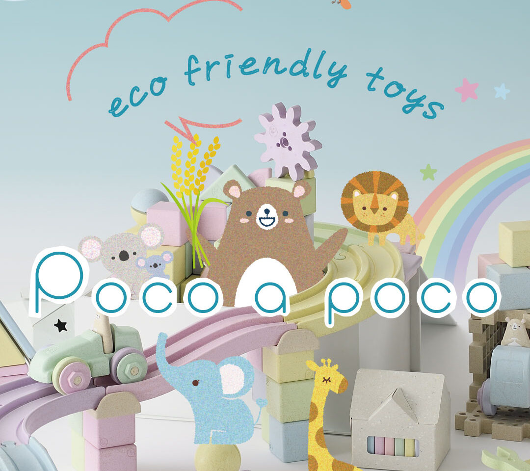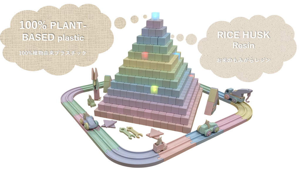 Poco a pocoの「にじいろシリーズ」は、もみがらレジンという、環境に優しい素材で作られています。